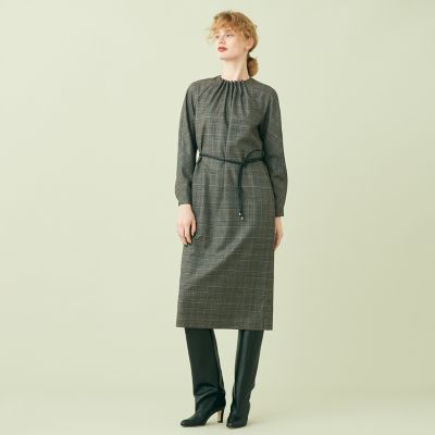 <maison TOMORROWLAND>ウールカラーグレンチェックオーバープレイド ネックタックワンピース