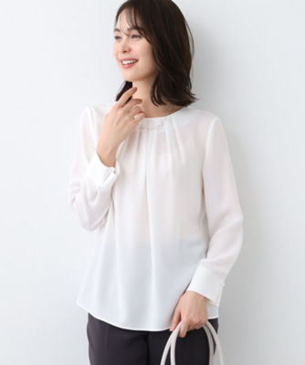 <COMME CA Sサイズ (Women/小さいサイズ)>〔 Sサイズ 〕 強撚カッセンアートプリント フロントタックブラウス(9617HK20)
